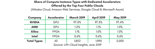 Nvidia’s data center segment (run-rating at $8bn against a $50bn TAM) sells GPUs to server OEMs (HP, Dell), public cloud providers, and through its own DGX AI supercomputer. The latter boxes are sold to enterprises with massive high performance computing (HPC) needs and contain, among other things, a CPU and several GPUs connected by high-speed interconnects.